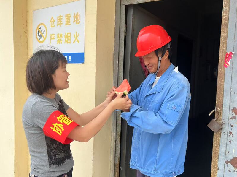 近日,物資貿(mào)易公司開展 “夏日送清涼” 活動,為基層庫房保管員送去組織的關(guān)懷。女工協(xié)管員將西瓜等防暑降溫物資送到他們手中,叮囑他們勞逸結(jié)合,避開高溫時(shí)段作業(yè),做好自我防護(hù)。